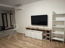 Квартира полностью меблирована, есть все необходимое для комфортного проживания, включая холодильник, телевизор, кондиционер, варочную панель, духовку, стиральную и посудомоечную машину.