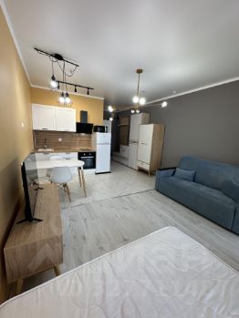 Квартира оборудована всем необходимым для комфортной жизни: удобной мебелью, балконом с панорамным остеклением, стиральной машиной, кондиционером и другой бытовой техникой. есть Smart TV и интернет.