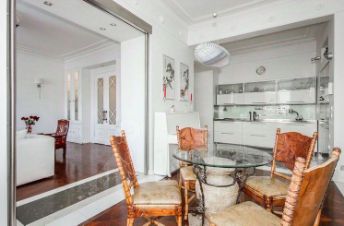 В квартире выполнен дизайнерский ремонт, который сочетает исторические детали и современные технологии: