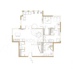 Современное планировочное решение: открытая кухня, объединенная с гостиной и столовой, изолированные спальни, а также две ванные комнаты, оборудованные по последнему слову техники.
