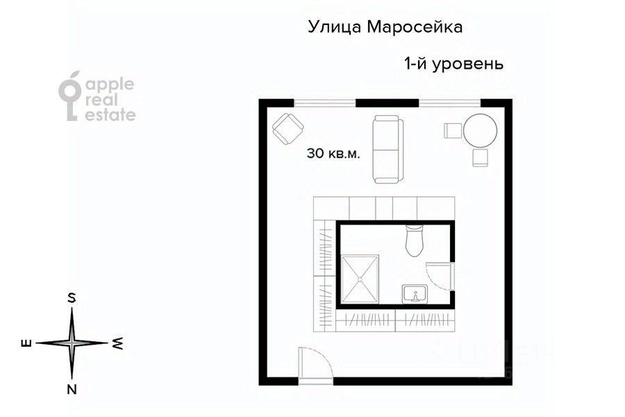 Ключевая особенность — "Куб": В центре единой студийной зоны расположен многофункциональный дизайнерский "Куб", который зонирует пространство и скрывает в себе все необходимое: