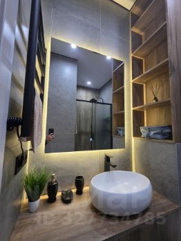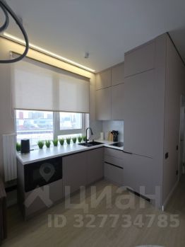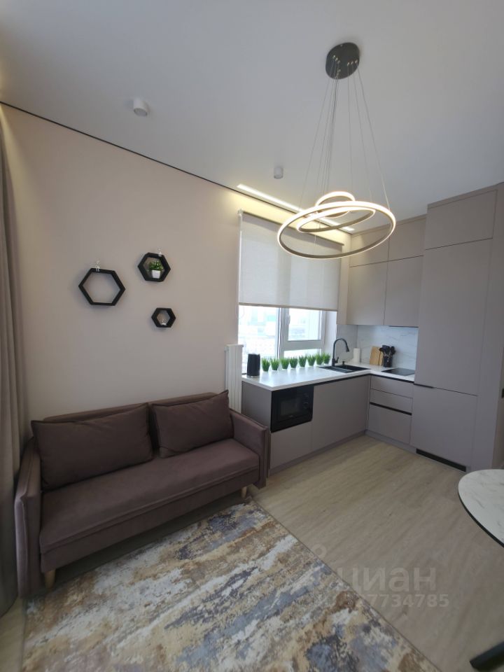 Общая площадь — 35 кв. м, кухня-гостиная 14 кв.м с 2мя окнами, спальня со своей гардеробной, просторный санузел. Полностью меблирована, есть вся необходимая техника. Мебель сделана на заказ.