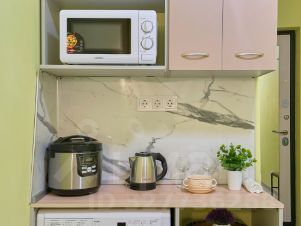 Оборудованная кухня, полный комплект посуды для приготовления и приёма еды;