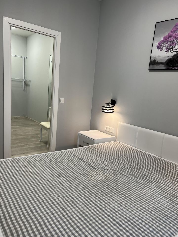Квартира оснащена всем необходимым для комфортной жизни. В комнатах установлена современная мебель, а кухня оборудована техникой: холодильник, посудомоечная машина, стиральная машина, кондиционер и телевизор. В ванной комнате есть душевая кабина. С балкона открывается приятный вид на окрестности.