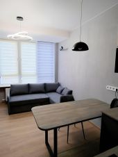 Уютная студия с ремонтом от дизайнера. В квартире просторный санузел в котором есть душ с продуманной нишей для мелочей, которые не мешаються под рукой. Имеется шкаф над стиральной машинкой который вмещает в себя всю бытовую химию и другие принадлежности гигиены(которые всегда некуда положить и очень бросаются в глаза). Туалет который скрытый от глаз,а не как в 99 из 100 на виду(что часто многих смущает в совмещенном санузле)