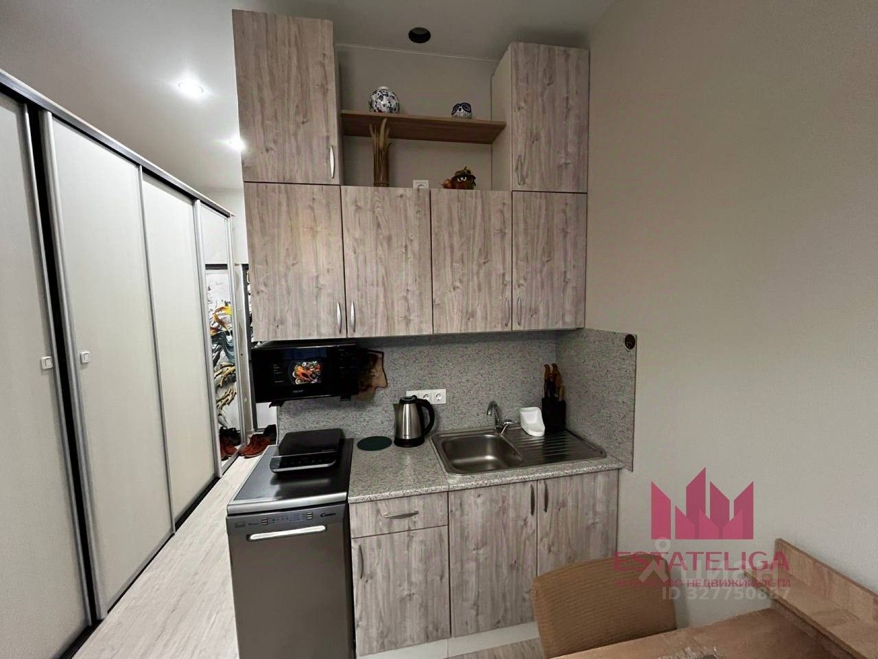 Дизайн и объем: Несмотря на компактные 24 кв. м, потолки 3 метра и панорамное остекление делают студию невероятно светлой и просторной. Современный ремонт, где каждый метр использован с умом.