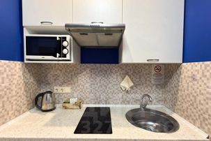 Студия полностью оборудована для комфортного проживания: телевизор, бесплатный Wi-Fi, стиральная машина, утюг, фен, варочная панель, чайник и микроволновка. Есть штопор и бокалы. Регулярная уборка профессиональной химией и дезинфекция от насекомых, а также смена белья на чистое и свежее проводятся перед каждым заездом.