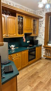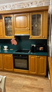 Квартира - на втором этаже. Кухня оснащена всем необходимым в том числе духовкой, микроволновой печью, холодильником с морозильной камерой, пароваркой, набором посуды для приготовления и приема пищи.
