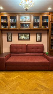 В отдельной спальне - двуспальная кровать, установлен кондиционер, в зале - огромный диван-кровать 280x200 см с кондиционером.