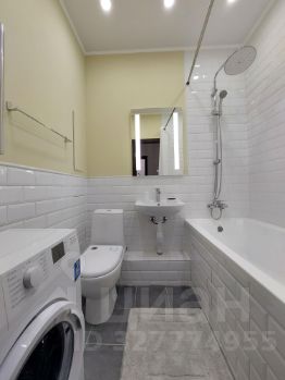 * Совмещенный санузел отделан плиткой до потолка. Установлена стиральная машина-автомат.
