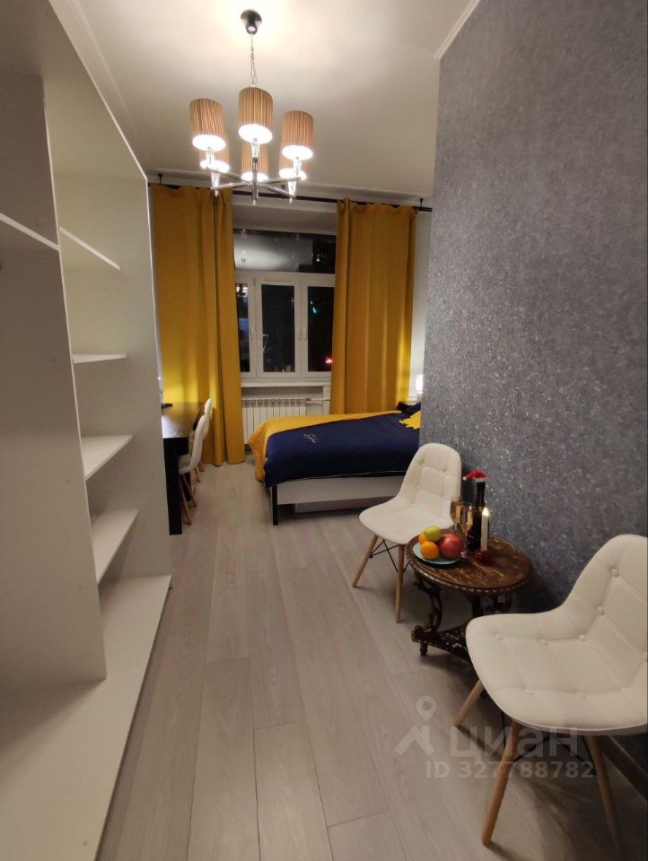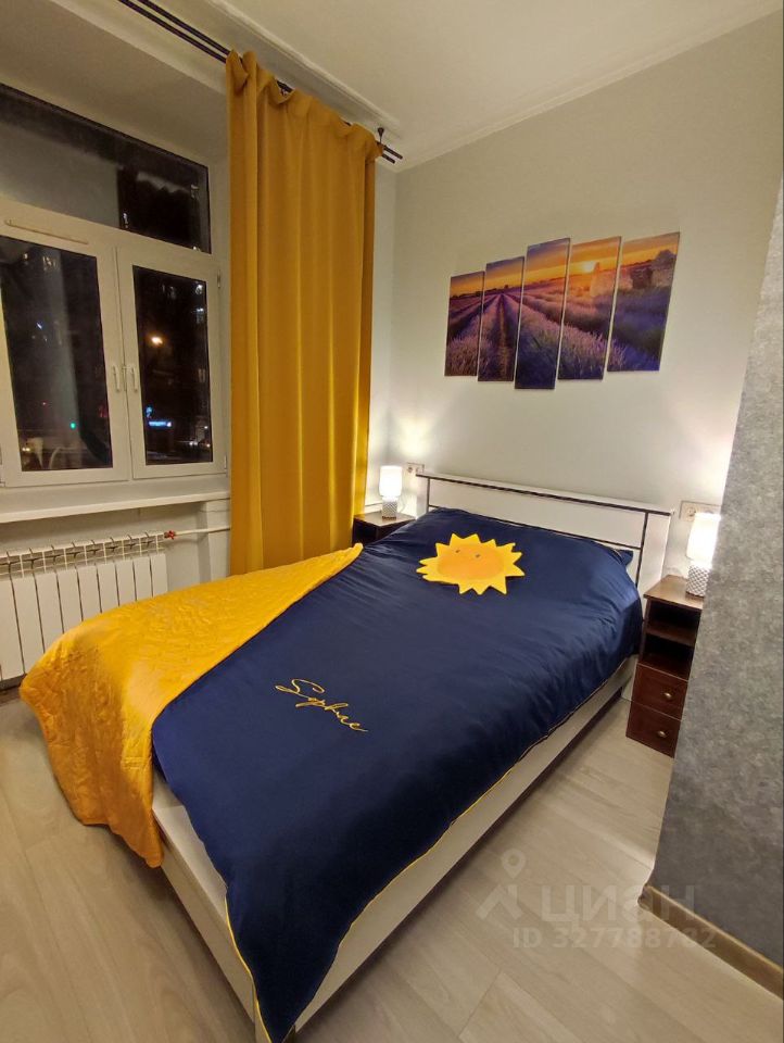 18 кв.м. В лавандово-сине- жёлтых тонах.