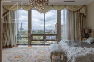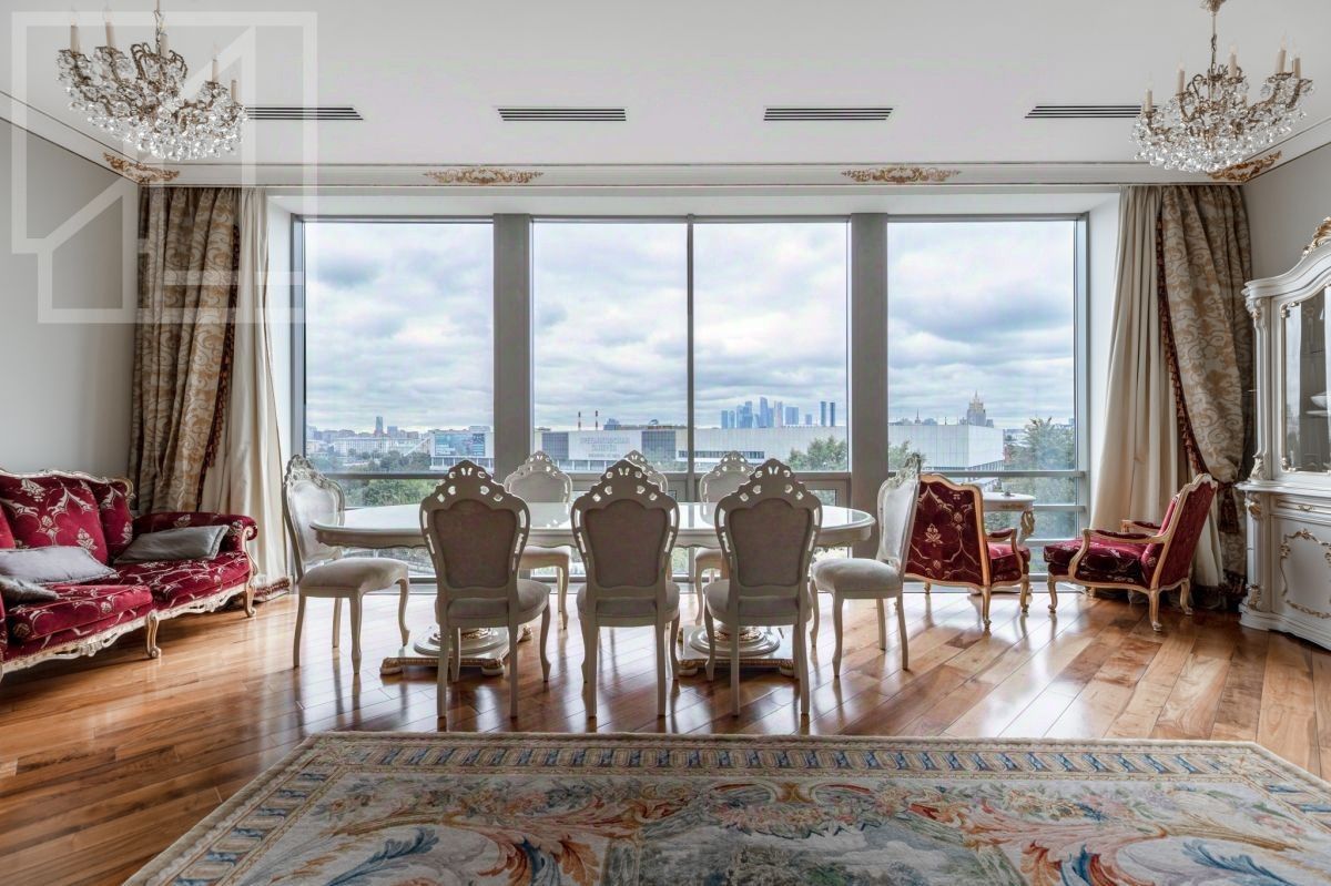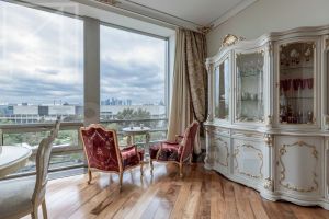 Планировка: просторная гостиная, кухня-столовая, 5 спален, кабинет, 3 полноценных санузла, 3 гардеробные, 1 постирочная, 1 техническая кладовая, 2 спальни с видовыми Балконами на Храм Христа Спасителя. Из окон открывается шикарный вид на парк Музеон, Москва Сити, Третьяковскую галлерею, Петра 1.