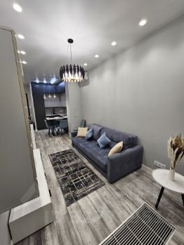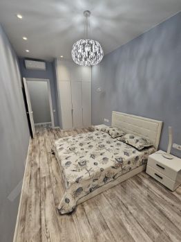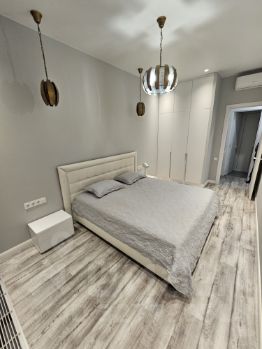 бoльшoй куxoнный гарнитур, холодильник, духовка, посудомойка, чайник, выделенная обеденная зона, раскладной диван и телевизор Изолированнае две спальные комната, установлены большие кровати с большими шкафыми для хранения. Отдельная гардеробная комната со встроенными шкафами и стиральтной машиной с сушкой. Стильная мебель на кухне и в комнате, современная техника, включая 3 кондиционера, холодильник, посудомоечную машину, микроволновая печь, вытяжка а также телевизор. Планировка квартиры продумана до мелочей: совмещённый санузел оборудован душевой кабиной. Также в квартире имеется всё для комфортной жизни.