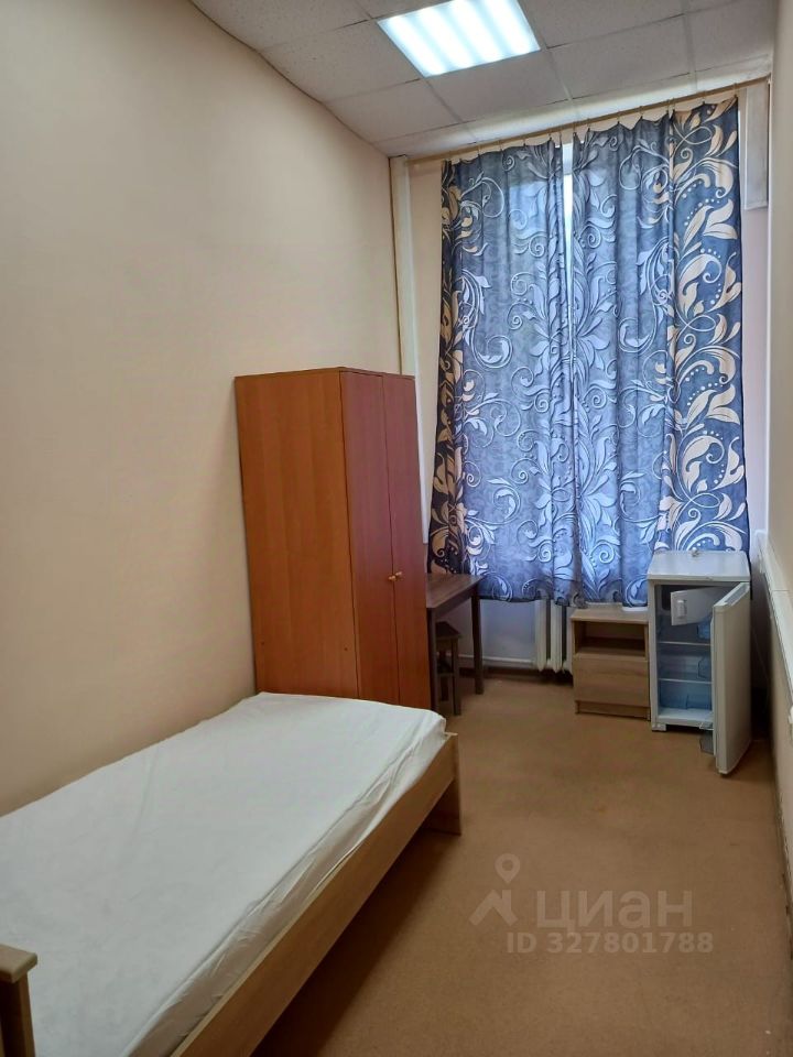 Апартаменты (студия) сдается на длительный срок с собственным санузлом (душевая кабина, раковина, унитаз); полностью меблирована: односпальная кровать, стол, стулья, шкафы, зеркало, полки, шторы, холодильник. Кухня с современными плитами и стиральная машина расположена в местах общего пользования.