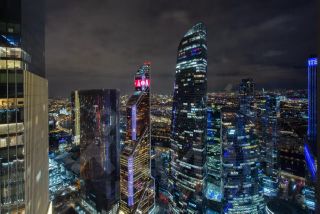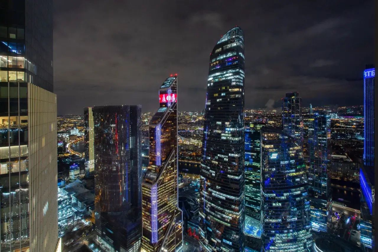 Панорамные окна открывают впечатляющий вид на башни Москва-Сити. Вечером огни небоскрёбов превращают обычный вечер в настоящее визуальное шоу.