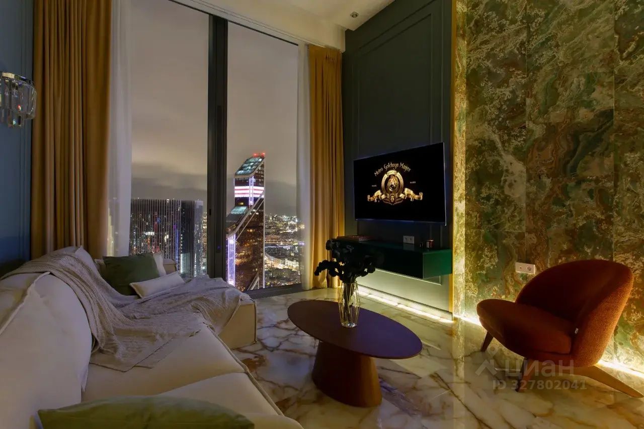 Самый эффектный апартамент в Москва-Сити: потолки 5 метров и уникальный дизайнерский интерьер на верхнем этаже. Идеальный выбор для тех, кто хочет жить выше всех, наслаждаться панорамами столицы и чувствовать роскошь в каждой детали.