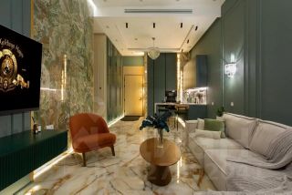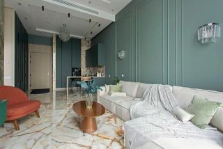 Интерьер выполнен с использованием редкого оникса и натурального мрамора.