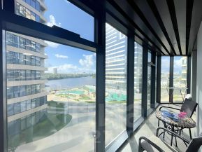 В просторной квартире с авторской готовой отделкой от специалистов бюро CREA+ в стиле Хэмптон высокие потолки (3,1 м). Панорамная остекленная лоджия (11 м²) с великолепными видами на водную поверхность. Удобная планировка: большая кухня-гостиная, спальня, просторный санузел. Квартира оснащена новой мебелью и техникой. Кондиционеры в каждой комнате. Предусмотрено вплоть до мелочей многое из того, что нужно для красивой, комфортной и безопасной жизни.
