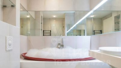 Светлая квартира с 3 спальнями общей площадью 104 м² в "Доме Фалеевых" на Лубянке в самом центре Москвы. Интерьер оформлен в стиле современного минимализма. Спланирована кухня-гостиная с выходом на балкон, мастер-спальня со своей ванной комнатой и выходом на балкон, вторая спальня, кабинет, гардеробная, второй санузел с душем, постирочная, балкон. Высота потолков 3 метра. Квартира укомплектована мебелью и бытовой техникой Kuppersbusch, Schulthess Maschinen AG, гардеробная система премиум-класса Molteni&C. Вся сантехника представлена брендом Flaminia. Установлена система кондиционирования, стиральная и посудомоечная машины, подогрев полов. Из окон открывается вид во двор.