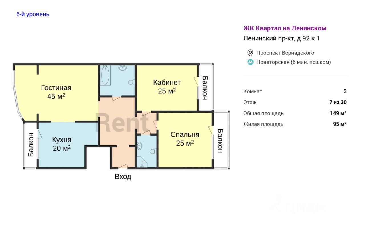 БЕЗ КОМИССИИ ДЛЯ АРЕНДАТОРА. В комплексе бизнес-класса "Квартал на Ленинском", в 5-6 минутах ходьбы от метро "Новаторская", предлагается роскошная трехкомнатная квартира. Планировка включает светлую спальню, гостиную, переходящую в кухню, и уютный кабинет. Выполнен дизайнерский ремонт в классическом стиле. Интерьер дополнен элегантной комфортабельной мебелью. Художественная лепнина на потолке и изящные люстры добавляют уникальности. Кухонный гарнитур оснащен полным комплектом техники. Имеются гардеробная, две ванные комнаты. Установлен нагреватель воды.