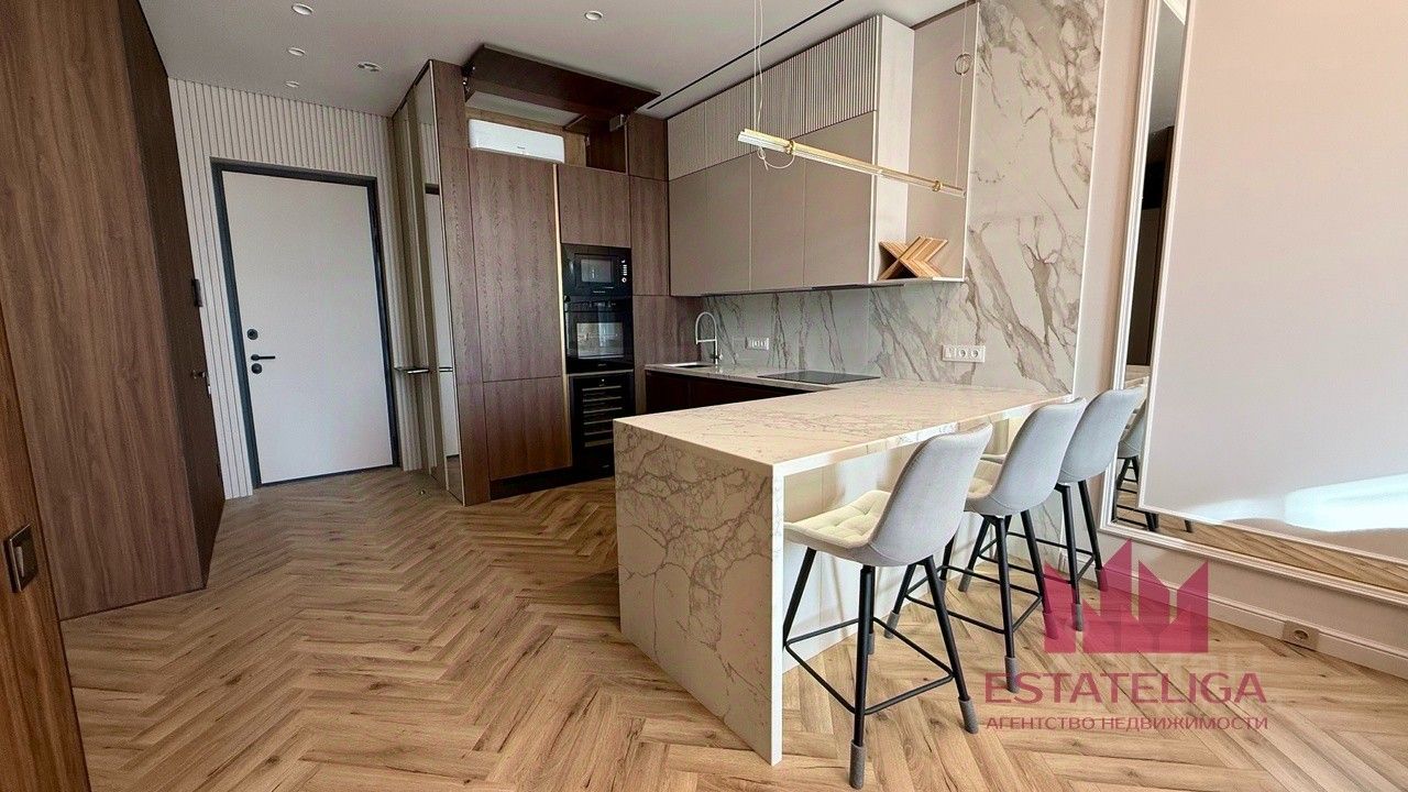 Панорамное остекление в пол открывает шикарный вид на парк и МГУ. Современная планировка: просторная кухня-гостиная, уютная спальня, вместительная гардеробная.