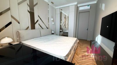 Полная комплектация: кухня с техникой (холодильник, посудомойка, винный шкаф), мягкий гарнитур, в комнате двуспальная кровать, множество встроенных шкафов, санузел с ванной-джакузи, стиральной и сушильной машинами.