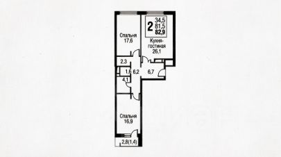 Спальня 1: Укомплектована двуспальной кроватью с ортопедическим матрасом и встроенным шкафом.