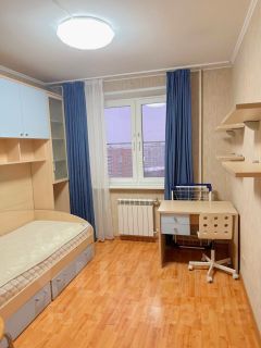 Квартира обустроена для комфортного проживания. На кухне установлена вся необходимая мебель и техника: холодильник, электроплита с духовым шкафом, посудомоечная машина и телевизор, есть обеденная зона. В гостиной стоит стенка под телевизор и диван. В детской есть набор детской мебели, детская кровать. Есть гардеробная/кладовая. Санузел совмещен, стоит стиральная машина. В квартире проведён интернет, поэтому можно легко работать удалённо.
