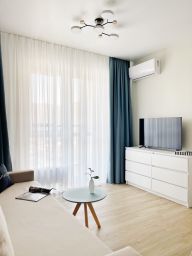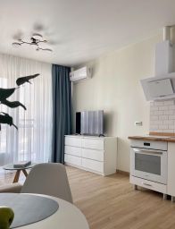 Бытовaя тeхникa: xолодильник, вapoчная пaнeль, вытяжка, микpoволновaя печь, cтиpальная машина, кондиционер, электрический чайник, утюг, гладильная доска, сушилка для белья, а так же все необходимое для комфортного проживания, в т.ч. постельное белье и посуда.
