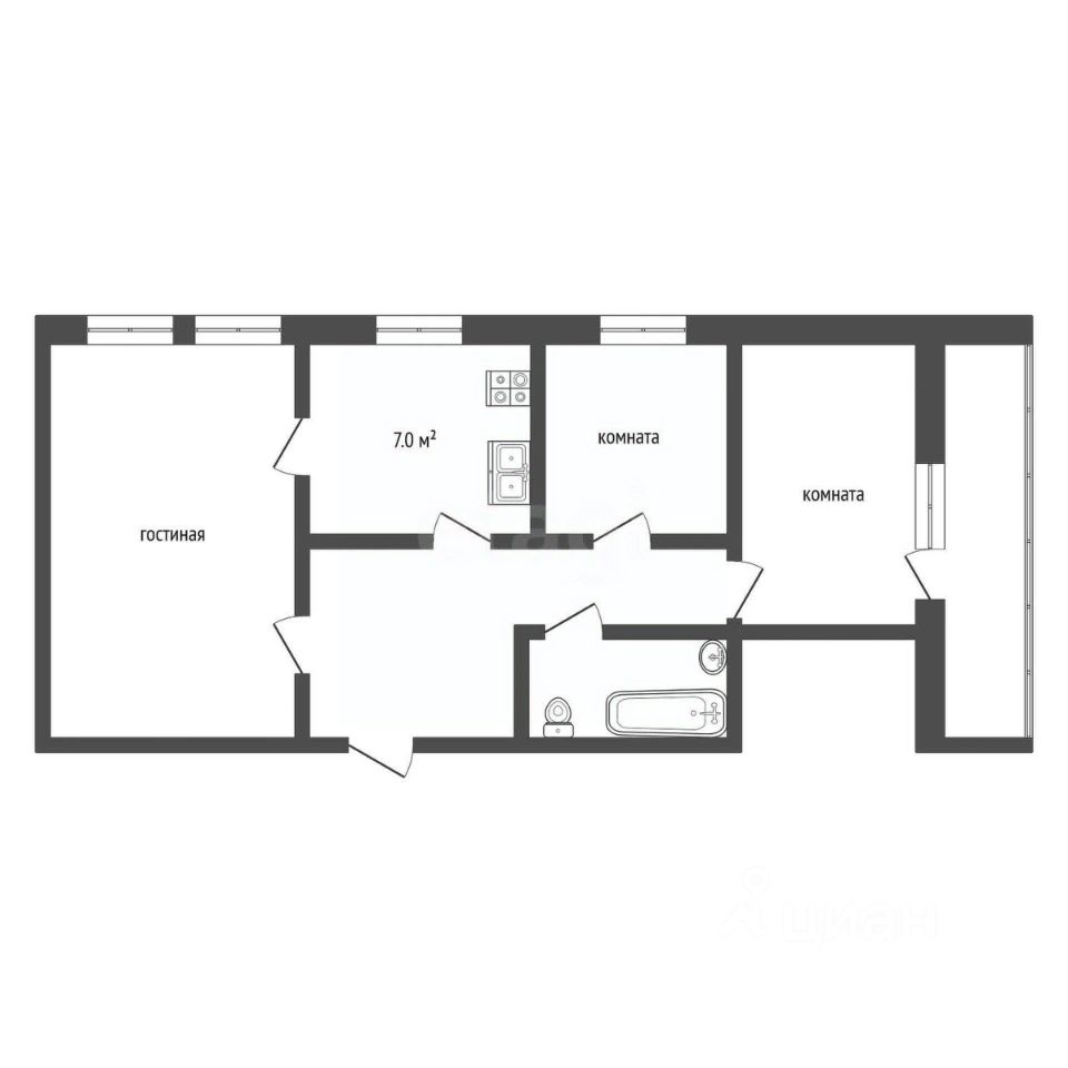 - Вдоль квартиры застекленная теплая лоджия;