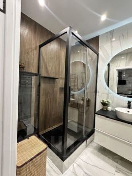 В квартире выполнен дизайнерский ремонт, который сочетает в себе комфорт и современный стиль. В обстановке использованы качественные материалы и элегантная мебель. Кухня полностью оснащена всеми необходимыми приборами: холодильник, посудомоечная машина, кондиционер и телевизор. Ванная комната оборудована душевой кабиной. В квартире также есть интернет, поэтому вы всегда будете на связи.