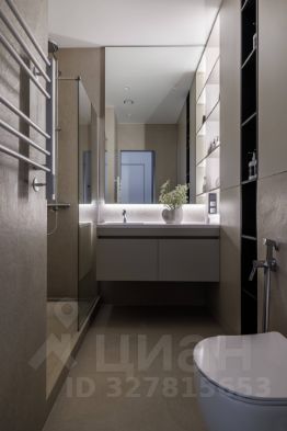 С/у с душевой кабиной, гиг. душ, зеркало с подсветкой, теплый пол, проточный нагреватель, система Нептун (защита от протечек)
