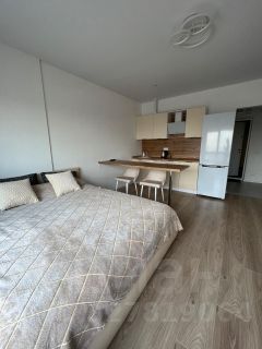 В квартире выполнен косметический ремонт, что создаёт атмосферу уюта и комфорта. Студия оснащена всей необходимой мебелью и техникой: кондиционер, холодильник, телевизор, посудомоечная и стиральная машины. Ванная комната оборудована душевой кабиной, что позволяет с комфортом принимать водные процедуры.