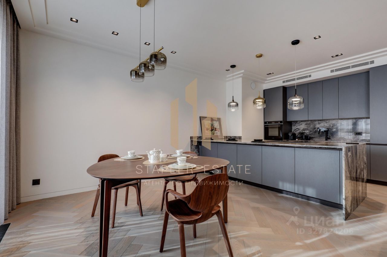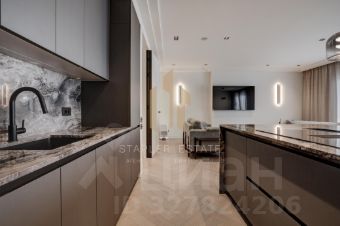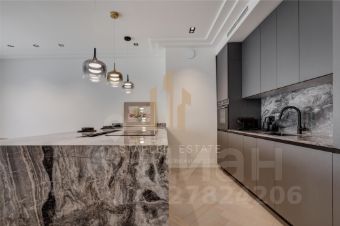 Просторная кухня-гостиная, в которой проливается теплый свет через панорамные окна, станет точкой притяжения для всей семьи и гостей. Остров, выполненный из натурального мрамора, послужит идеальным местом для готовки, обеденная зона никогда не будет пустовать, а уютные мягкие диваны, привезенные из Италии, позволят вам в полной мере насладиться отдыхом.