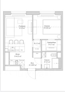 просторная кухня-гостиная, продуманная система хранения, увеличенные оконные проемы.