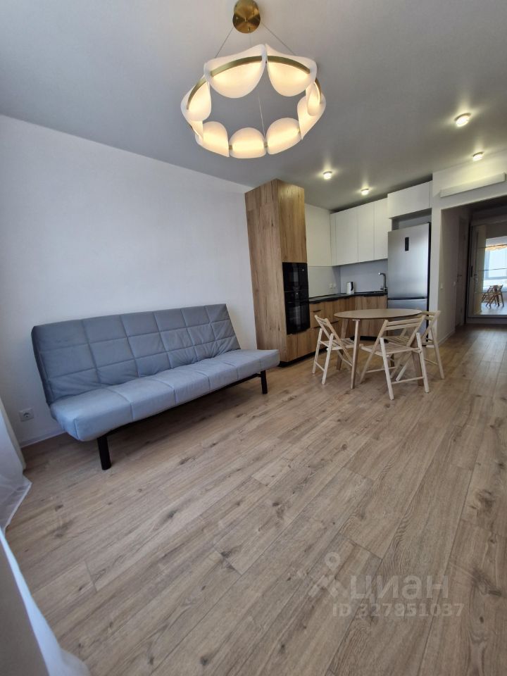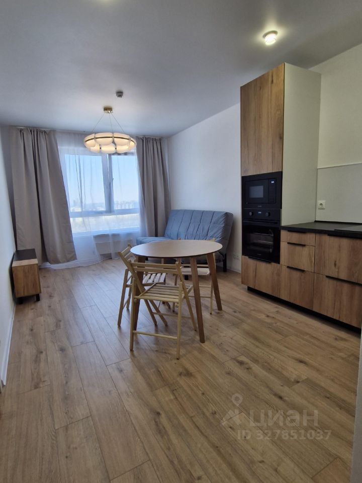 Сдаётся уютная однокомнатная квартира с евроремонтом в новом доме, построенном в 2025 году. Общая площадь квартиры 41,6 кв. м, из которых 14,4 кв. м занимает жилая зона, а просторная кухня занимает 18,2 кв. м. Квартира расположена на 21 этаже 33-этажного дома, окна выходят на улицу, что обеспечивает отличное естественное освещение. Вид в сторону парка Коломенское.