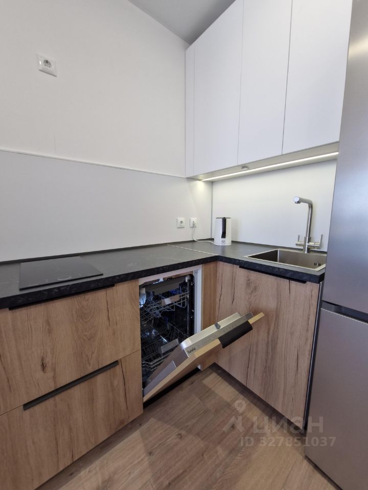 В квартире выполнен современный евроремонт, поэтому можно сразу заехать и жить с комфортом. Есть вся необходимая мебель на кухне и в комнате. Кухня оборудована современной техникой: холодильник, посудомоечная и стиральная машины. Санузел совмещённый, с полноценной ванной.
