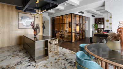 Главное о квартире: четвёртый этаж, 150 метров, мастер-спальня с гардеробной и ванной, кабинет-трансформер, гостевой санузел, постирочная, гардеробная в прихожей. Дизайнерский ремонт, мебель из Италии, техника ASKO. Высота потолков 3,3 метра. Системы вентиляции и кондиционирования. Эти интерьеры входят в шорт-лист лучших квартир журнала ELLE Decor.