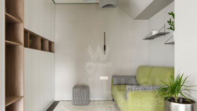 Кабинет — образец лаконичности. Встроенная кровать-трансформер, диван и стол. Он легко становится детской, гостевой спальней или мастерской для работы и творчества. А если дома становится скучно, ты просто спускаешься на первый этаж: бьюти-салоны, центр паровых коктейлей, гастропабы, кондитерская, лаунж-бары и фитнес-студия EveryBody — не каждый дом может похвастаться такой порцией полезного ритейла.