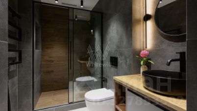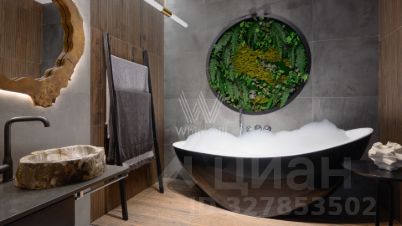 В ванной стирается грань между природой и городом. Большое панно из мха. Раковина и зеркало вырезаны из окаменелого дерева. Ванна необычной ассиметричной формы приглашает к ритуалу расслабления. Это твой личный спа-уголок с шалфеем, мятой и лавандовым маслом.