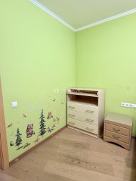 Расположена на 7-ом этаже, окна с видами на Тропаревским лесопарком и приватный внутренний двор.