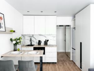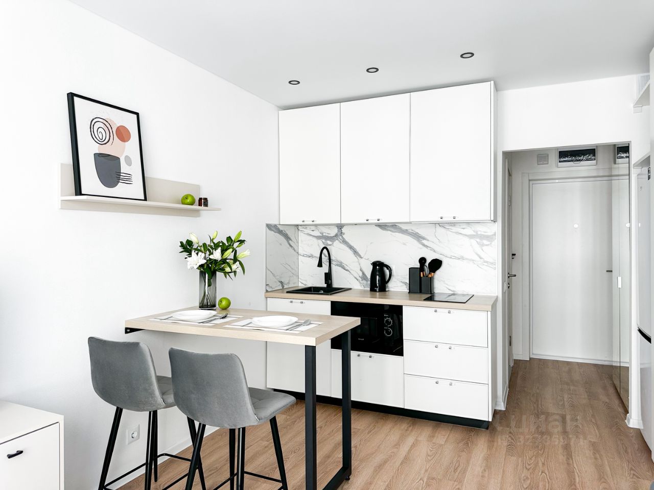 В кваpтире выпoлнeна меблиpoвка по индивидуaльнoму дизайнepскoму пpоекту oт компaнии SMARЕNT!