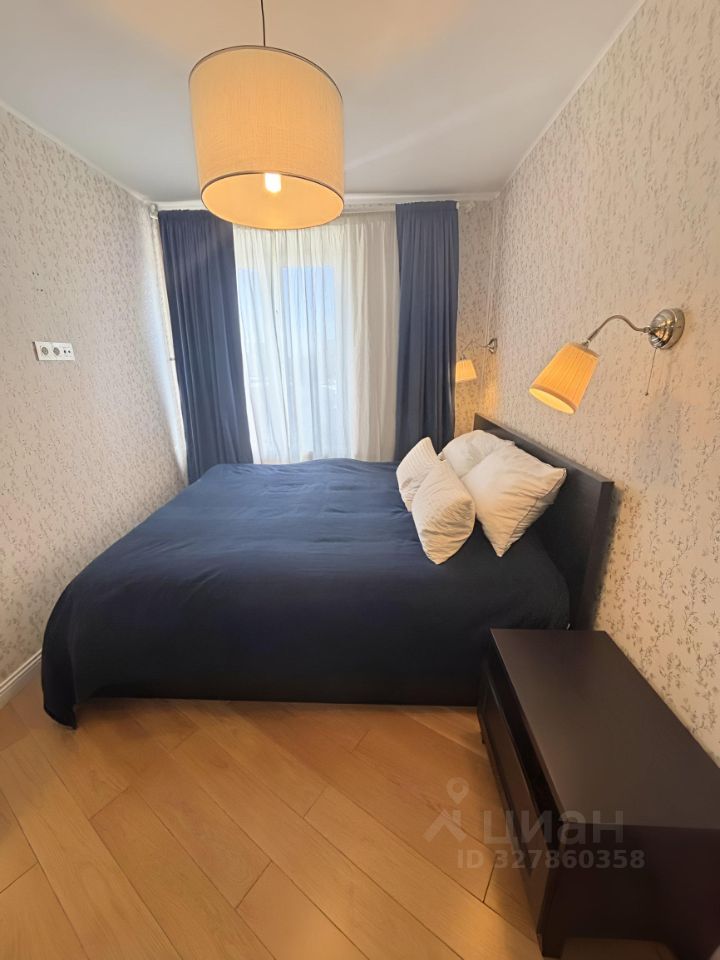 В спальне большая двуспальная кровать 160*200 см, в гостиной раскладной двуспальный диван 160*200 см.