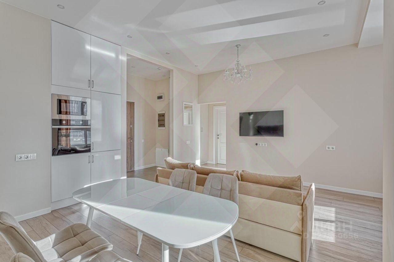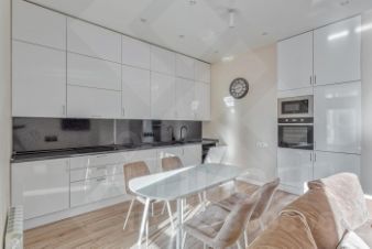 В квартире имеется все необходимое для уютного проживания. Кухня со встроенной техникой: холодильник, духовой шкаф, посудомоечная машина. В зоне спальни двуспальная кровать. Ванная комната с большой душевой кабиной.