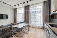 В квартире: С мебелью, Парковка, Посудомоечная машина, Стиральная машина, Бойлер, Душевая кабина, Теплые полы, Охрана, Интернет, Европланировка, Интерьер в современном стиле, Кондиционер, Апартаменты, Гардеробная комната, Лифт, Ремонт - дизайнерский, Кухонная мебель, Окна на улицу, Окна во двор