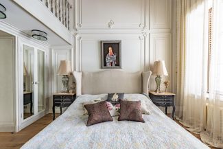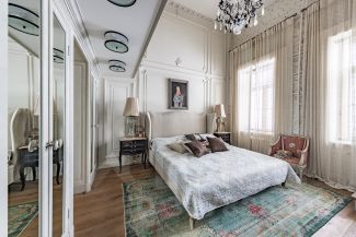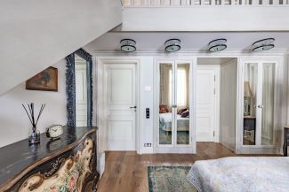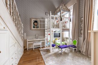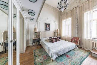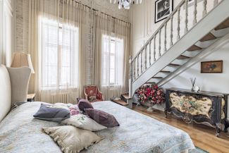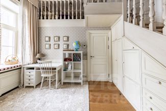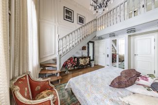 * Второй этаж: Детская комната с антресолью и потолками 5 метров ( 30 кв.м.), Хозяйская спальня (40 кв.м.) с антресолью, гардеробной и сан.узлом (12 кв.м), Холл, Столовая, кухня. Гостинная с библиотекой, Сан.узел с душевой. Выход в подьезд с консьержем.