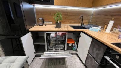 Функциональный современный кухонный гарнитур с встроенной варочной панелью, духовым шкафом, вытяжкой и посудомоечной машиной. Новый холодильник и микроволновая печь.