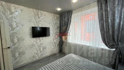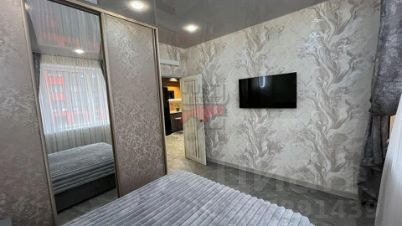 В спальне удобная и комфортная 2-х спальная кровать, шкаф-купе и телевизор.
