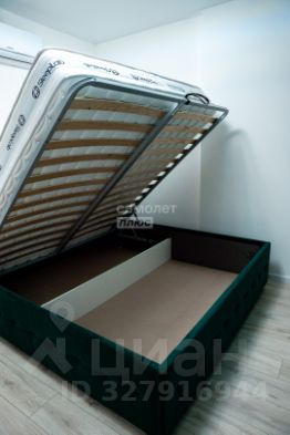 Из мебели: дизайнерские вращающиеся барные стулья. Раздвижной диван с подстаканниками для приятных вечеров за просмотров фильмов. Дизайнерский стол на платформе. Спальня Дизайнерская кровать с новым матрасом 28 см (180х200 см). Кровать с подъемным механизмом. Также встроена подсветка кровати с управлением цветом с телефонного приложения.