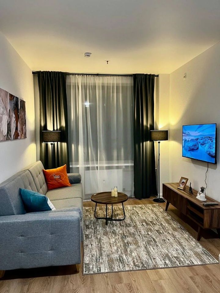 В квартире есть всё необходимое для уютного проживания. Дизайнерский ремонт создаёт атмосферу стиля и комфорта. На кухне установлена современная мебель, а также необходимая техника: холодильник, посудомоечная машина и стиральная машина. В гостиной и спальне также имеется мебель и телевизор. В ванной комнате установлена ванна. Интернет подключен, поэтому можно сразу пользоваться всеми благами цивилизации.